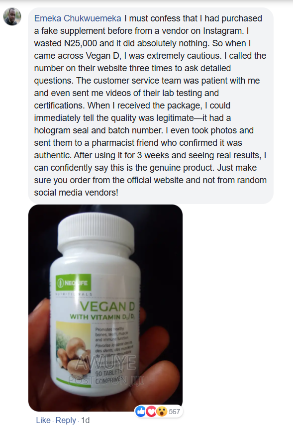 ✓ One Month Supply of Vegan D (₦56,900 value)